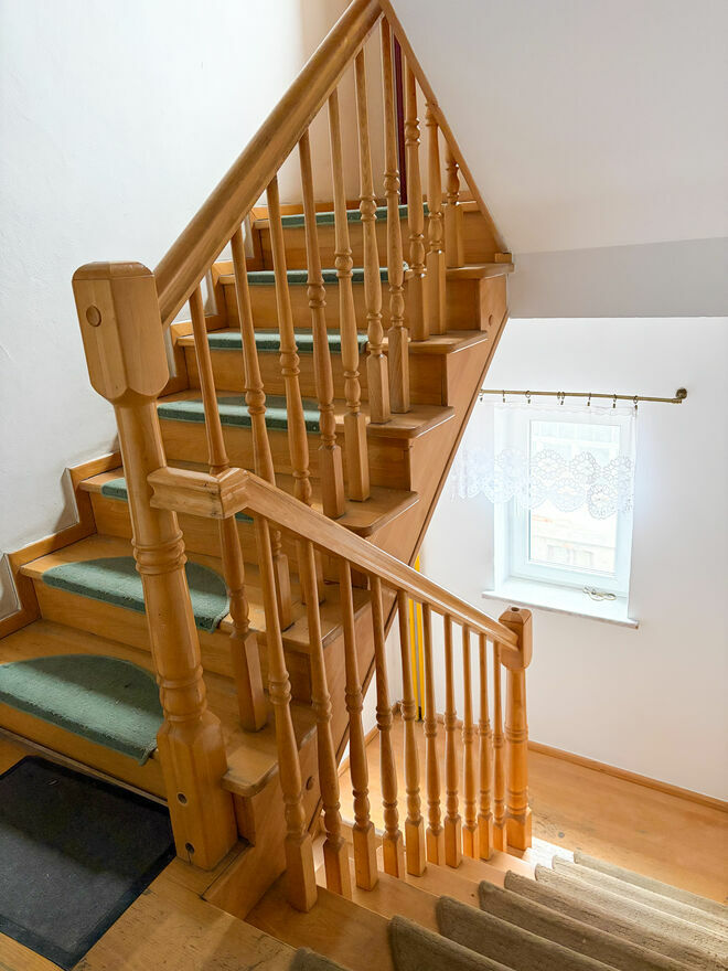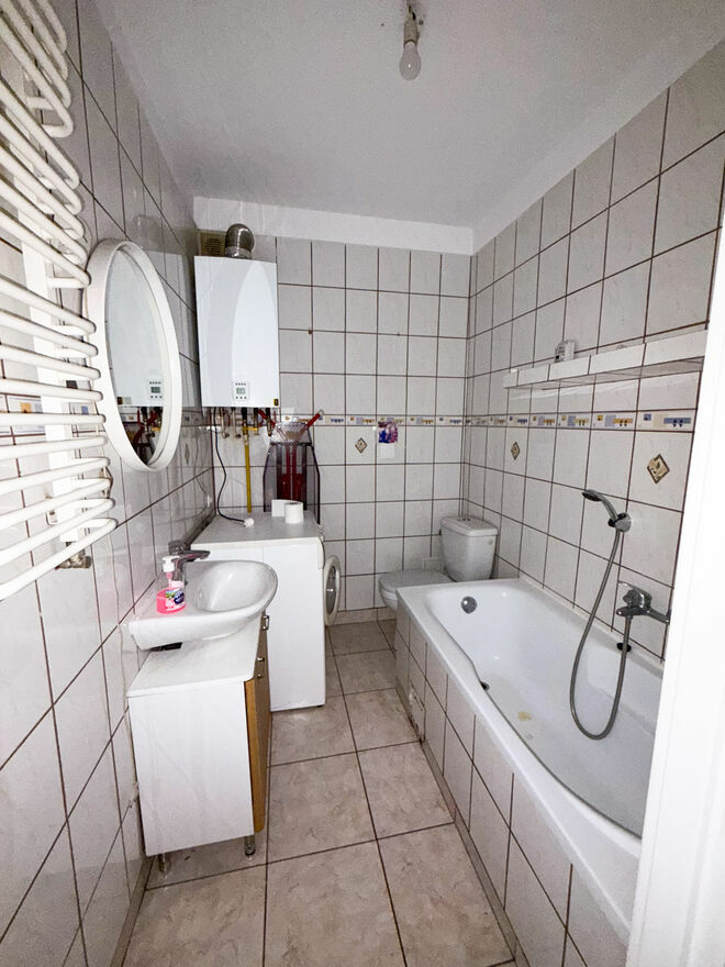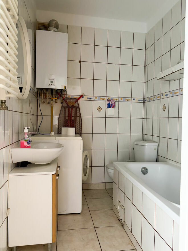 Okna PCV zapewniają dobre doświetlenie wszystkich pomieszczeń. W łazience znajduje się duża wanna, WC oraz umywalka. Ogrzewanie i ciepła woda pochodzą z dwufunkcyjnego pieca gazowego.